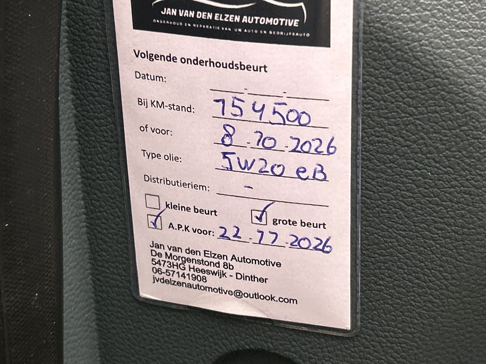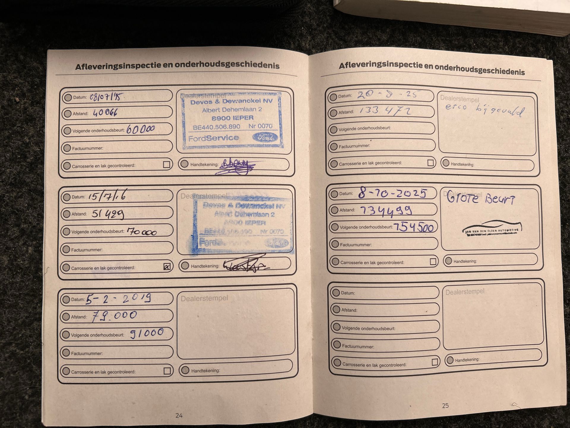 Beide sleutels en alle boekjes van de auto zijn aanwezig en ingevuld, zo heeft de auto bij 134.499 km nog zijn laatste groot onderhoud gehad.