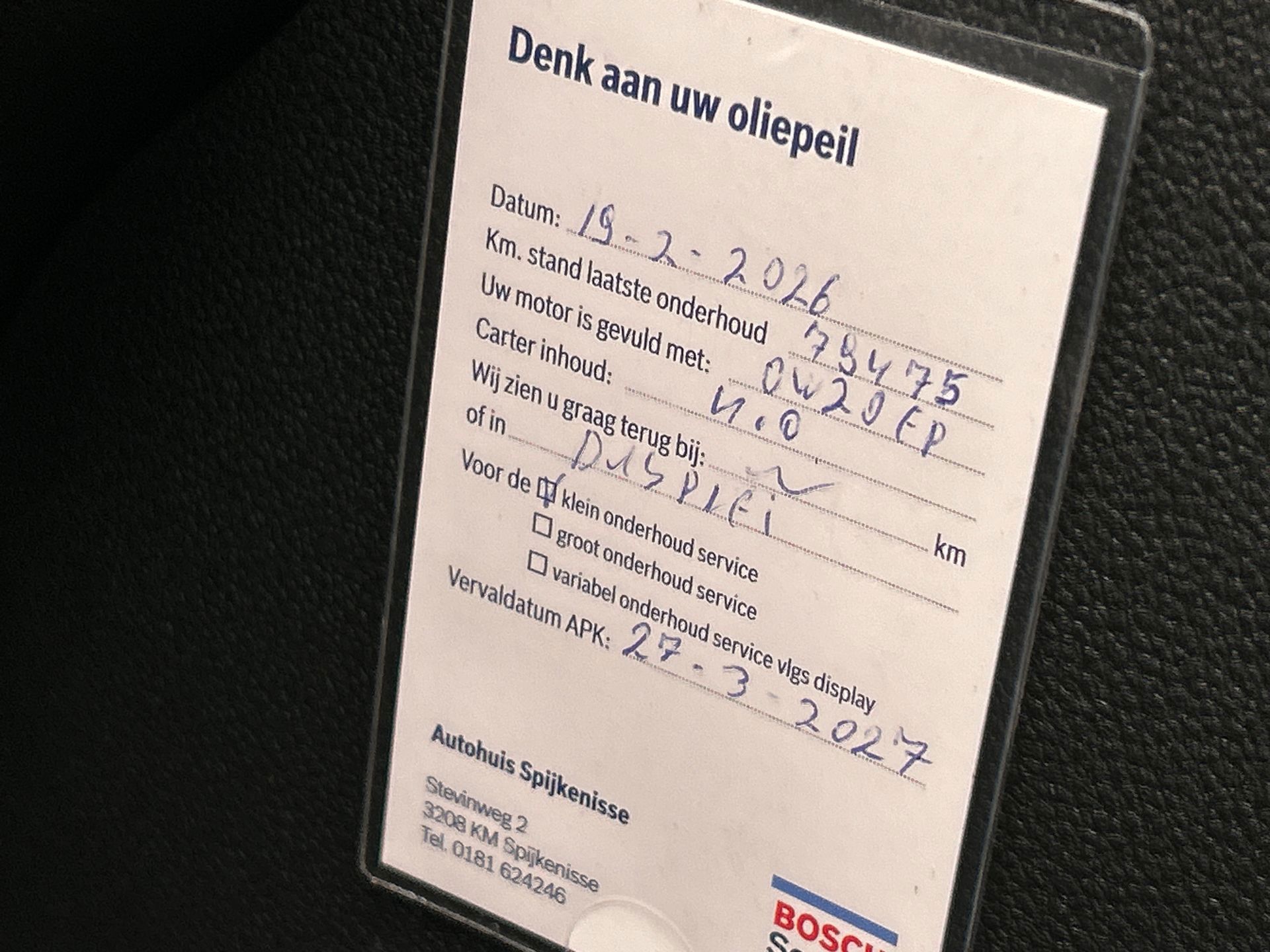 Beide sleutels en alle boekjes van de auto zijn aanwezig en ingevuld, zo heeft de auto bij 78.475 km nog zijn laatste onderhoudsbeurt gehad.